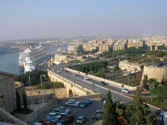 ヴァレッタ近郊の古い町並みが綺麗に見える。